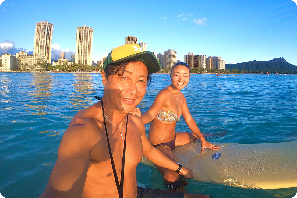 ハワイ (オアフ島) でのサーフガイドやサーフィンレッスンを催行しております。サウスショア (ワイキキ~アラモアナ周辺) を中心にお客様のレベルに合わせてご希望の場所にご案内し、一緒に海に入り安全を第一に考えてガイドいたしますので、初心者の方でも安心してサーフィン体験をすることができます。無料で記念の波乗り動画ショットも撮影いたしますのでお楽しみに!ハワイのサーフィンガイドは Nalu Hawaii Surf Camp にお任せください。